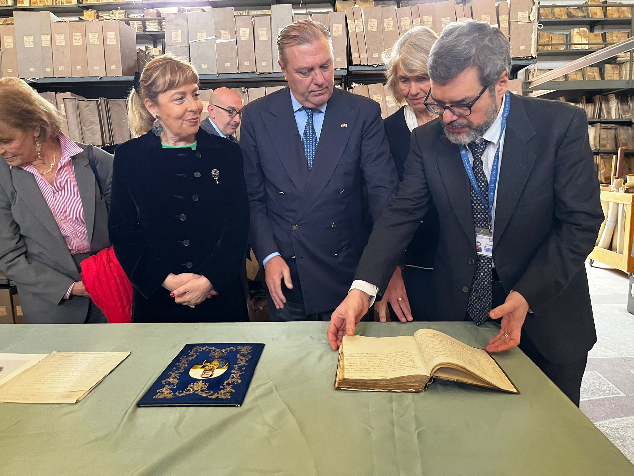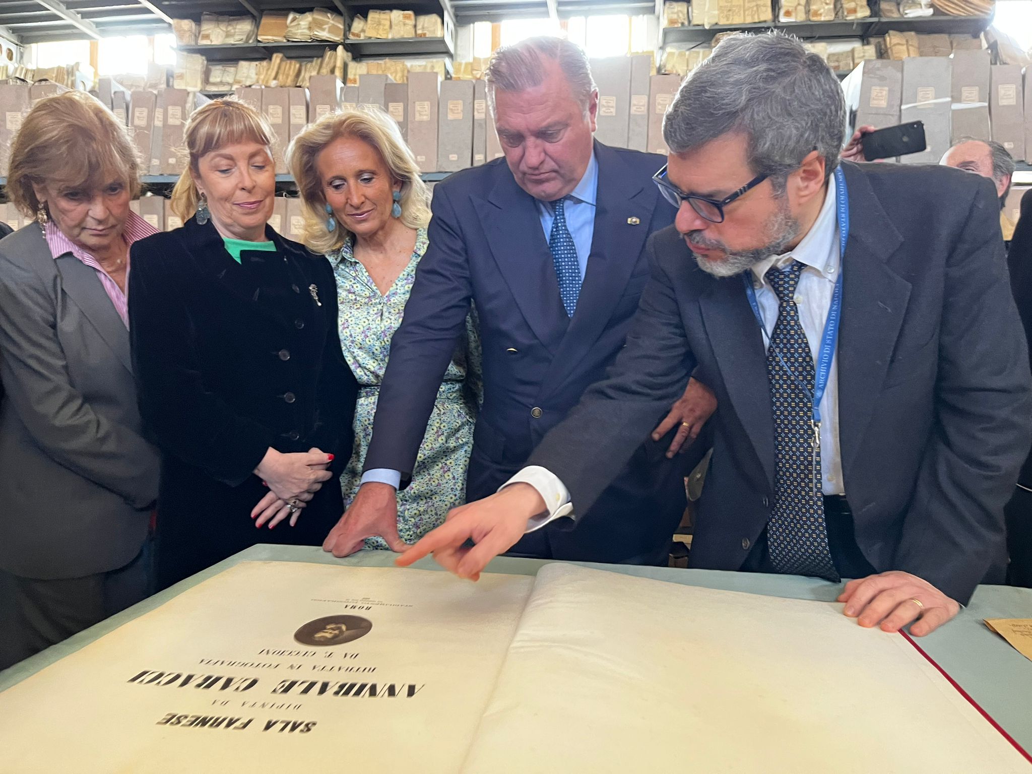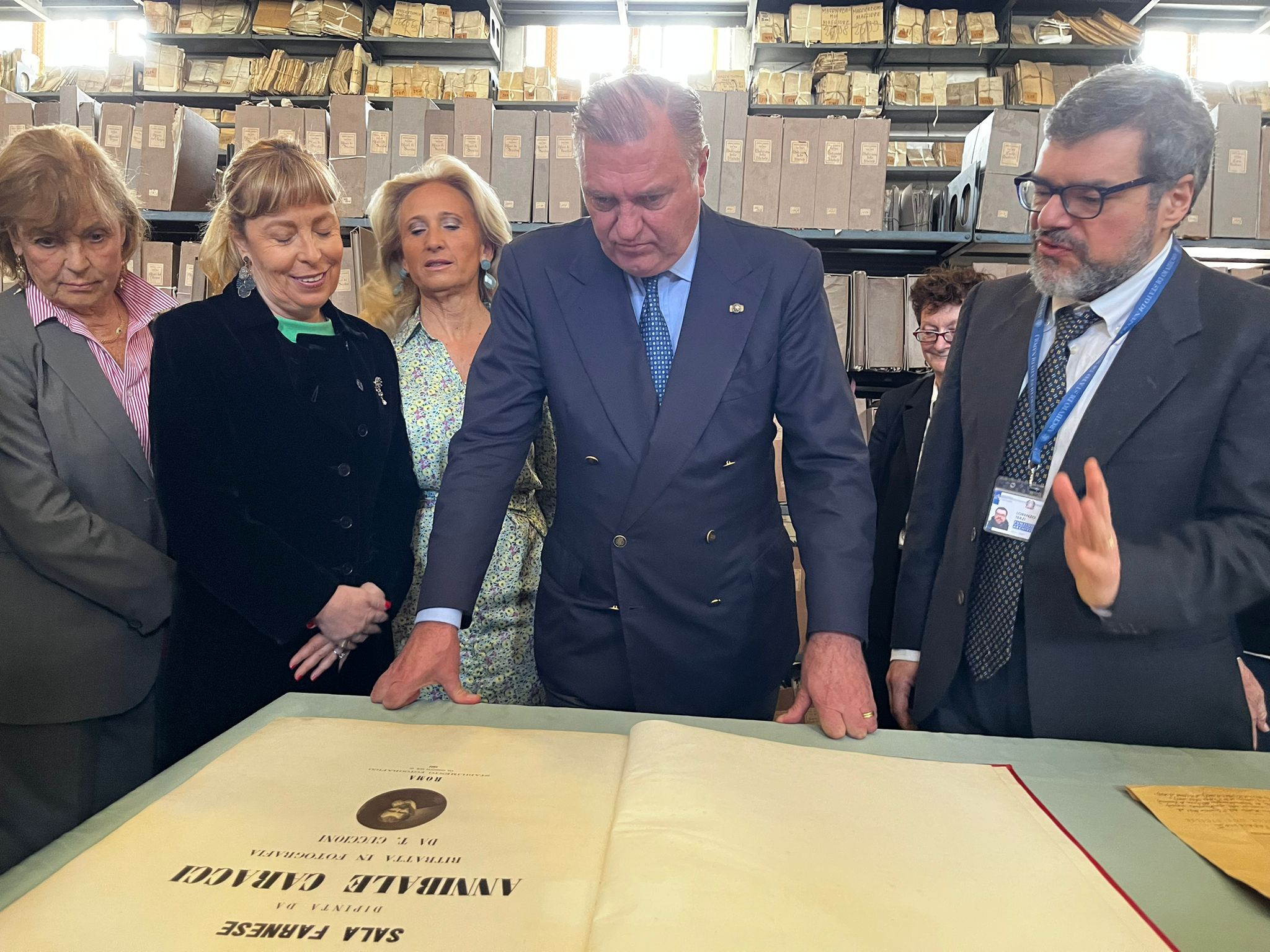I funzionari archivisti Dott. Ferdinando Salemme e Dott. Lorenzo Terzi hanno illustrato al principe Carlo di Borbone alcuni tra i più significativi documenti conservati negli archivi di Casa Reale e negli archivi delle famiglie nobili napoletane.